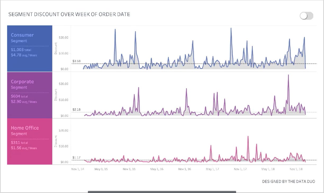 This chart should be the main part of a dashboard, we’d add a viz in tooltip with a small commentary to provide more details behind each data point.