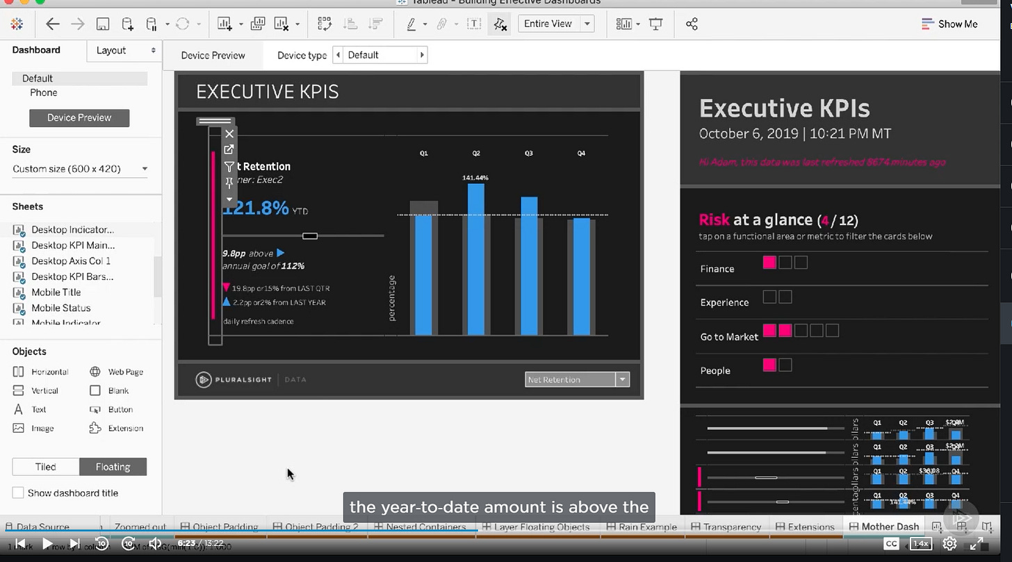 Here’s two great example from the data duo's (@drexelpooja & @acrahen) brilliant pluralsight course on building effective dashboards: